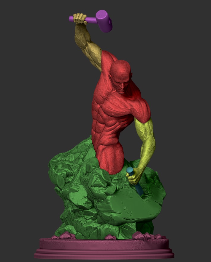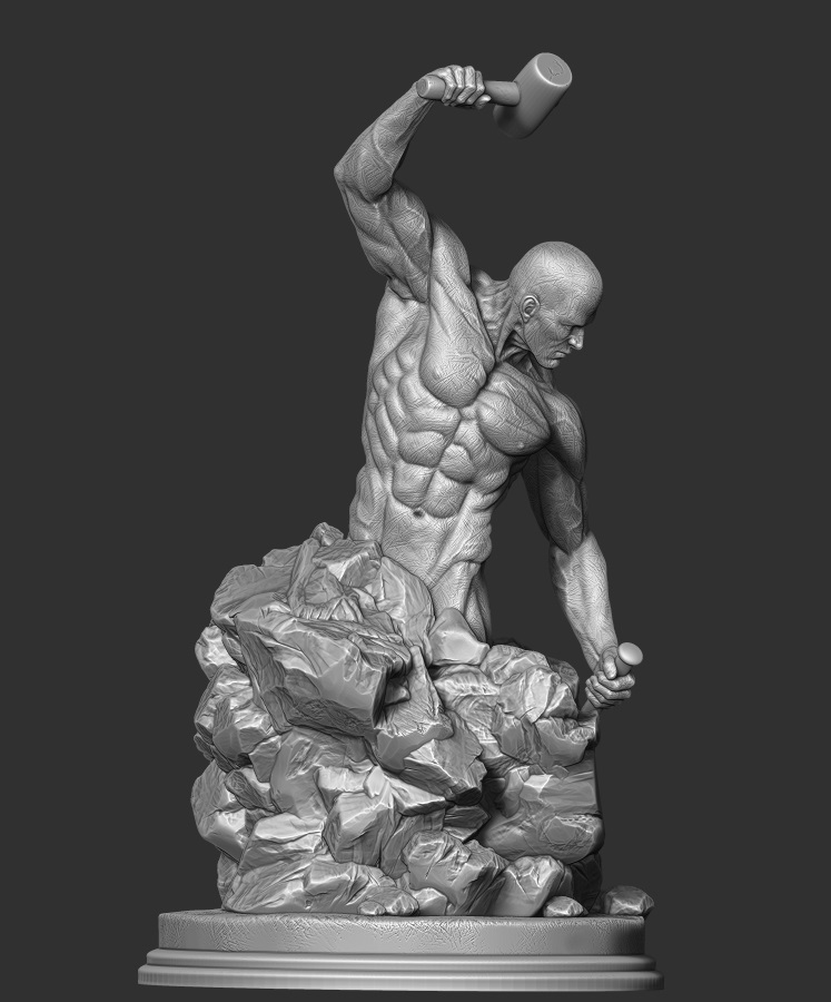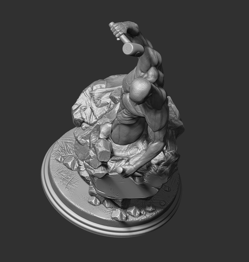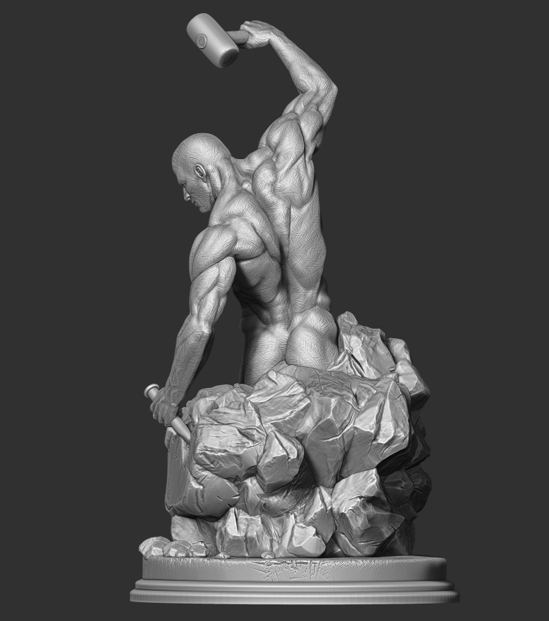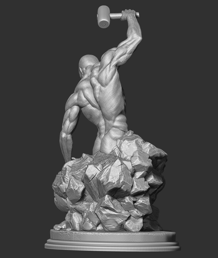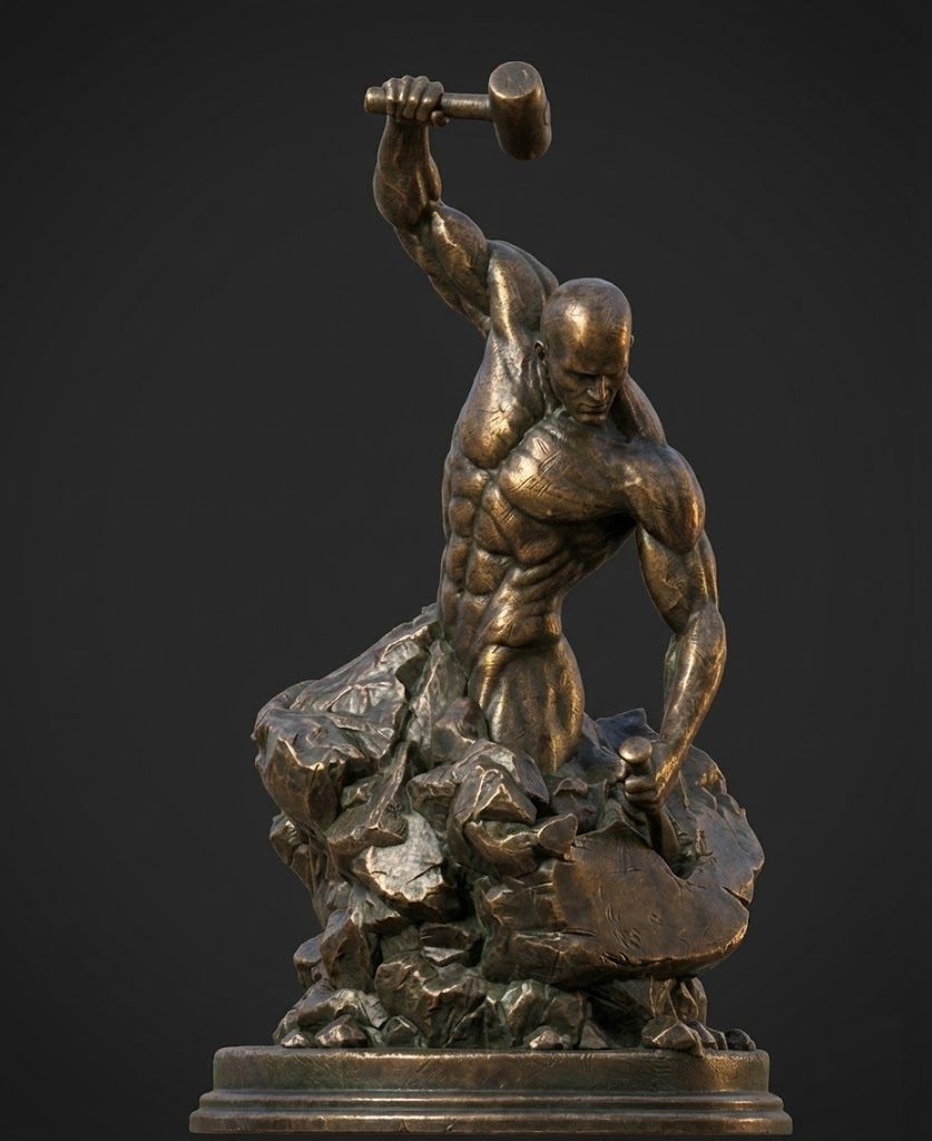 A cena captura o instante em que o personagem rompe suas próprias limitações, esculpindo a si mesmo com força, dor, foco e disciplina. Cada golpe do martelo simboliza o esforço diário de quem decide não desistir. É a materialização da ideia de que ninguém nasce pronto — todos se constroem.